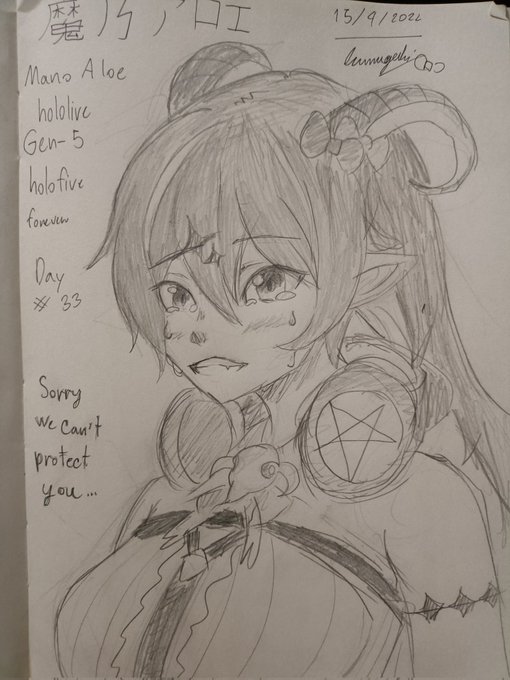 Day #33 She will always be in our hearts she was gone but will never be forgotten we're sorry we can't protect you... Mano Aloe 。 #まのあろ絵 #魔乃アロエ #hololive #hololivefanart #FANART #holodailydraw