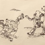 鳥獣戯画で一番好きな場面を描きました🐸 #絵描きさんと繋がたい #イラスト好きさんと繋がりたい #秋の創作クラスタフォロー祭り #鳥獣戯画 #動物 #爬虫類 #いいねした人全員フォローする