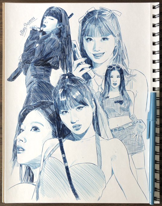 Momo and Sana sketches in blue pen from Talk That Talk MV 🥰 #TWICE #MOMO #SANA #트와이스 #모모 #사나 #TalkThatTalk #BETWEEN1and2 #TwiceFanart @JYPETWICE