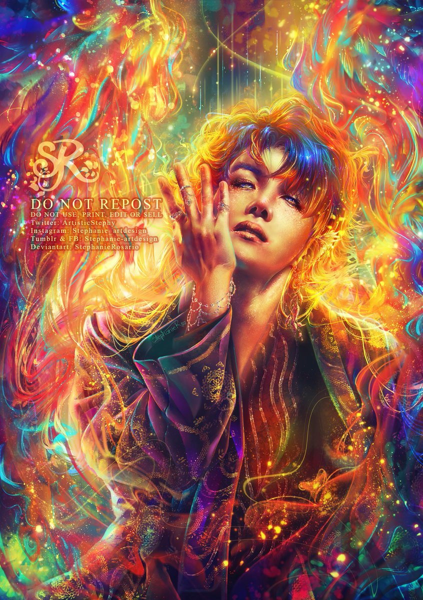 Phoenix style Hobi 🌈☀️Drawing Time: About 33 hours Close up shots below ✨ #stephanie_artdesign #BTS #JHOPE #Hobi #방탄소년단 #정호석 #phoenix #colorful #rainbow #제이홉 #drawing #btsfanart #digitalart