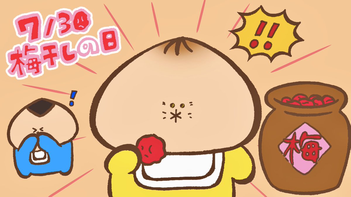 おはようございます!😆✨ 今日は #梅干しの日 #まいにち太朗 #今日は何の日 #7月30日 #イラスト好きな人と繋がりたい #絵描きさんと繋がりたい 「 すっぱい!うまい! うめぼし! 」