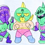 #今月描いた絵を晒そう 息子(6歳)と合作の #キン肉マン #ロビンマスク #ウォーズマン と、 息子(6歳)作 #ジャンクマン #ドン・ピカデリカオーネ (#ドンピカデリカオーネ #ドンピカーデリカオーネ) #ミスターVTR (#ミスター・VTR)🎥です! #キン肉マン #キン肉マンアニメ化