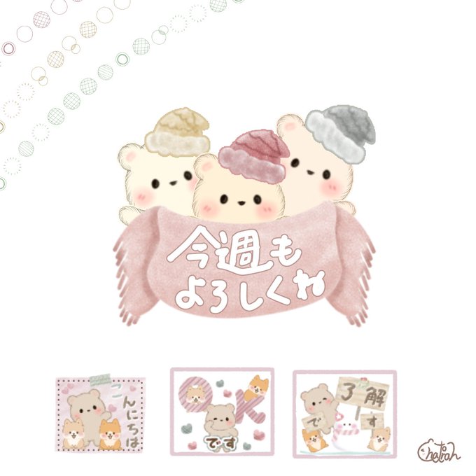 おはようございます🎶 今週もよろしくお願いします☺️ スタンプ絵文字 store.line.me/stickershop/au… LINE公式 lin.ee/Hphs0rg ChatoLand chatoran3cats.tumblr.com 着せかえ store.line.me/themeshop/prod… #絵描きさんと繋がりたい #くま #テディベア #イラスト #LINEスタンプ #LINE絵文字