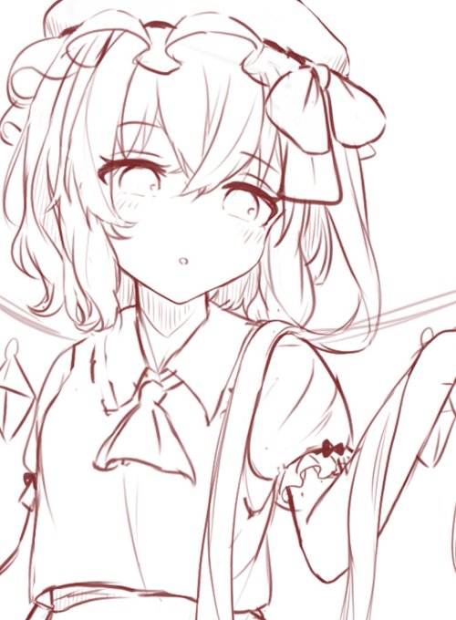 では仕事行ってきます(≧∇≦)b #東方Project #東方絵描きさんと繋がりたい #chen #フランドールスカーレット #フラン 朝おえかき・・影途中 今回は塗り込みしない予定(*´ω`*)
