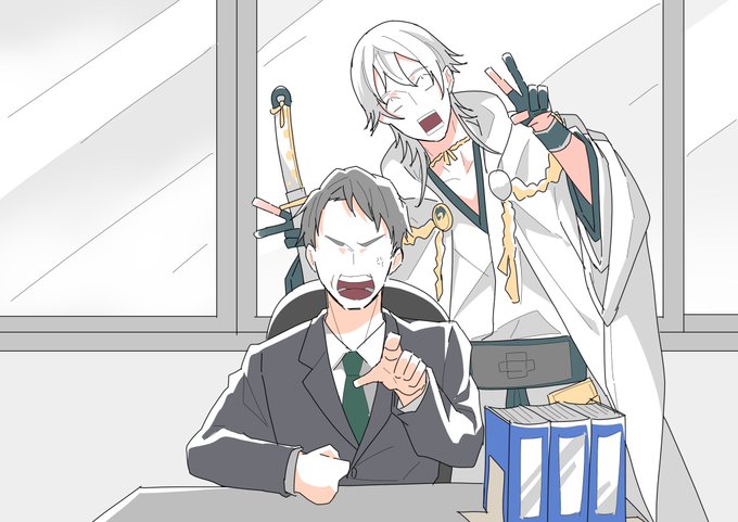 #1月30日は刀帳番号130番鶴丸国永の日 #刀帳No130で1月30日は鶴丸国永の日 #1月31日は刀帳番号131番鶴丸国永の日 #刀帳No131で1月31日は鶴丸国永の日 特と極、どっちの服もいいよねという絵