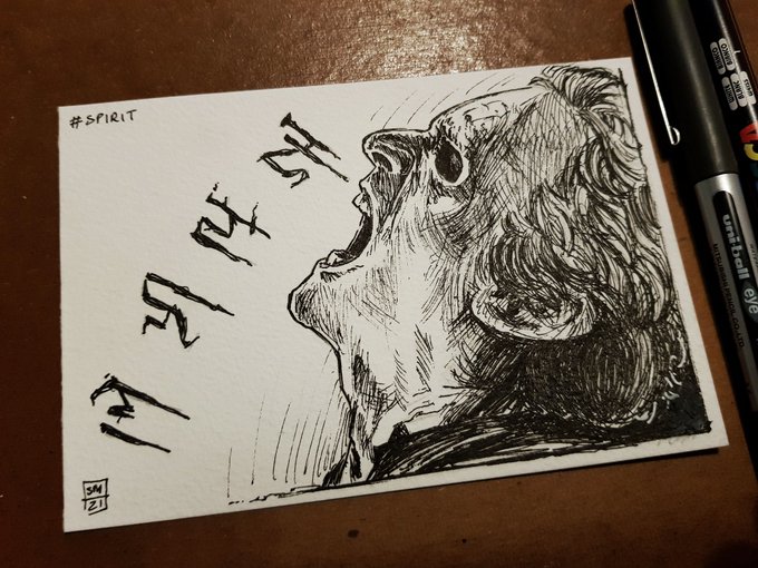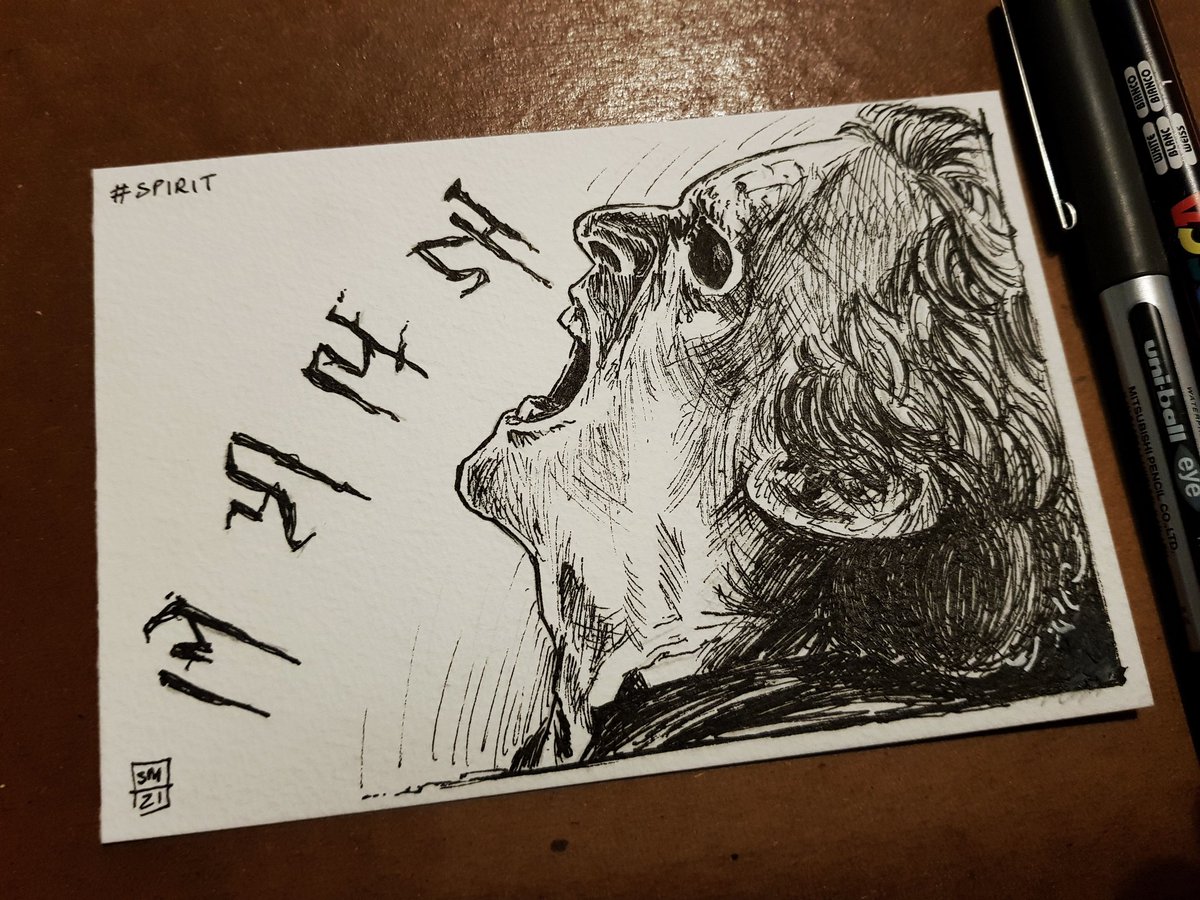 Day 6 of #Inktober2021 postcard doodles. #Spirit "The ghost of the Doctor raged!" #DoctorWho #12thDoctor #UnderTheLake #BeforeTheFlood #Ghost #Inktober #InkDoodle #Postcard #FanArt @bbcdoctorwho @DoctorWho_BBCA