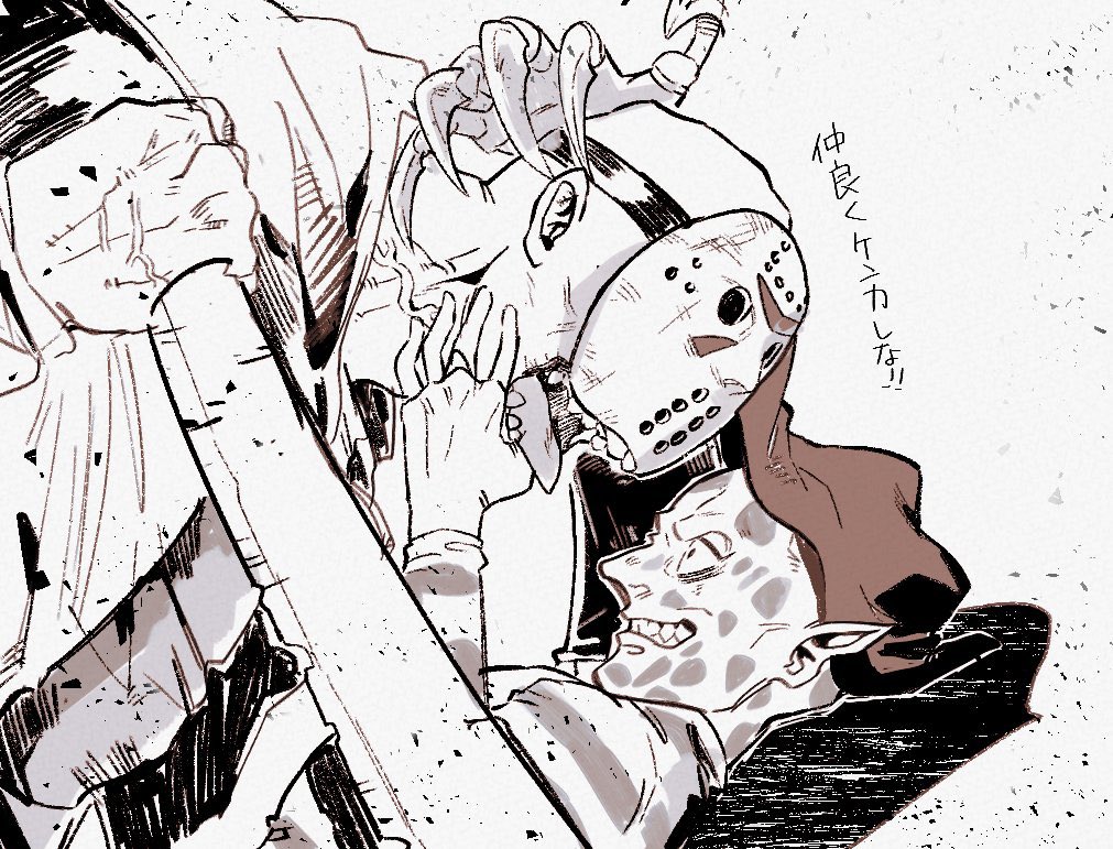 「✕」 遅れてきたハロウィンの絵。 Late Halloween drawing. 📒 | #クロスオーバー #ウルトラセブンX #ウルトラセブン #ウルトラセブン55周年 #特撮絵描きさんと繋がりたい #特撮好きと繋がりたい #特撮 #13日の金曜日 #FridayThe13th #ジェイソン #Jason #ジェイソンX #JasonX #rkgk #イラスト