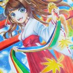 #2021SNS秋の芸術祭 #みんなで楽しむTwitter展覧会 今日で10月も終わりですが、今月描いたのは赤い和傘の振り袖の絵だけになりました。紅葉の美しい関西の名所を参考に背景にしてます。 先月描いた絵も同じモデルさんですが、雰囲気変わりますね。 どちらもB4サイズ。 #色鉛筆画 #美人画