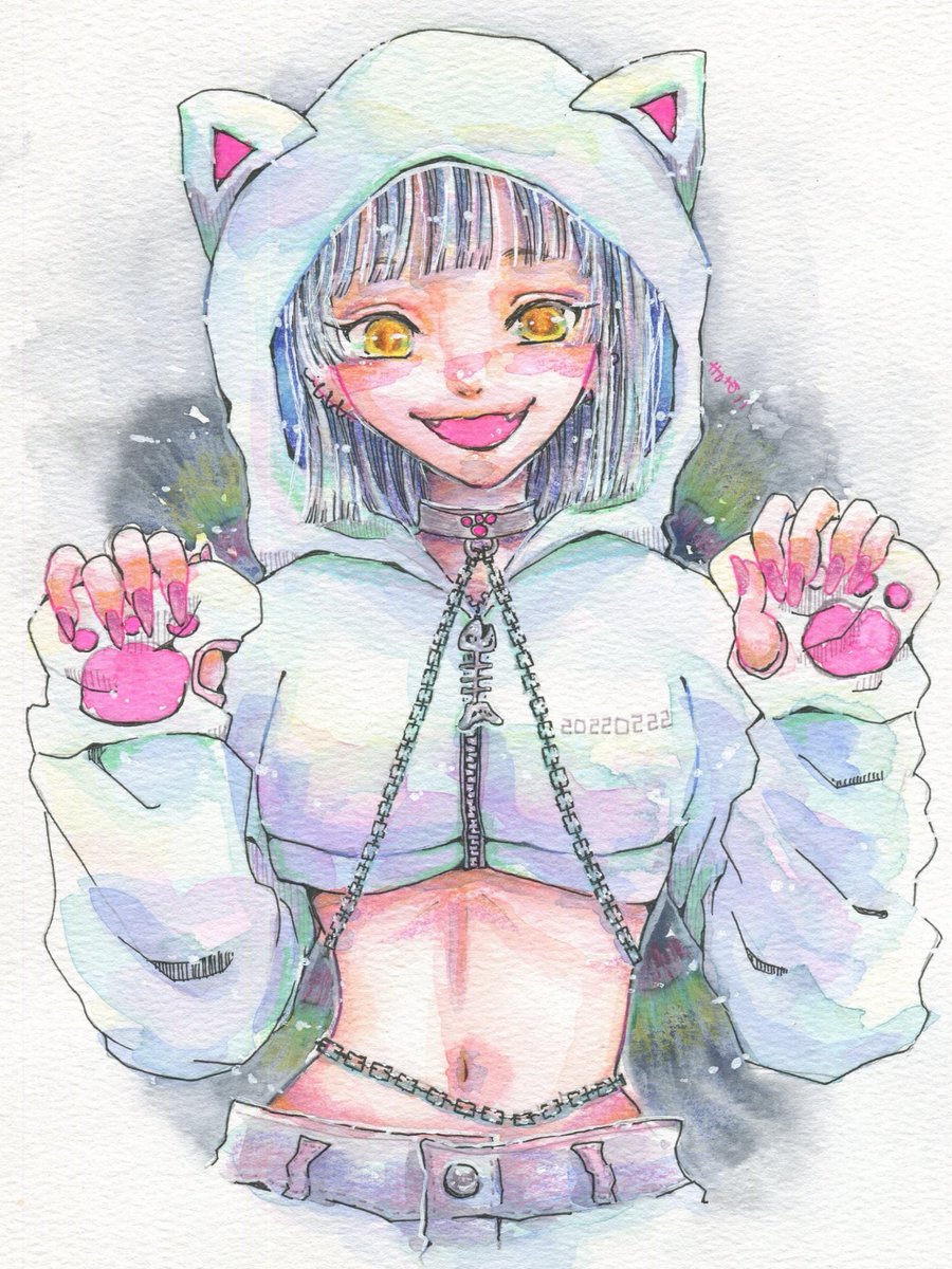 #望月聖 #おもちもちもち望月聖 #望月聖の魅力おもち寄り #猫の日 #ネコの日 #2022年2月22日 にゃーにゃーにゃーの日₍ᐞ•༝•ᐞ₎◞ ̑̑ なので、ネコミミフードの望月聖ちゃんを描きました🌕🐈