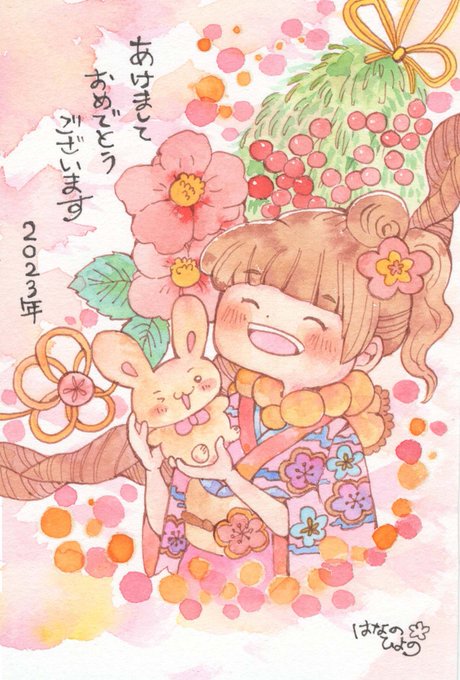 🐇𝙷𝚊𝚙𝚙𝚢 𝙽𝚎𝚠 𝚢𝚎𝚊𝚛🎍 🏵今年もよろしくお願いします🦋 マイペースですが昨年同様 仲良くしてもらえたら嬉しいです💞 #あけましておめでとうございます #2023NewYear #年賀イラスト #イラスト #illustration #描き初め #みんなで楽しむTwitter展示会 #絵描きさんとつながりたい #兎年