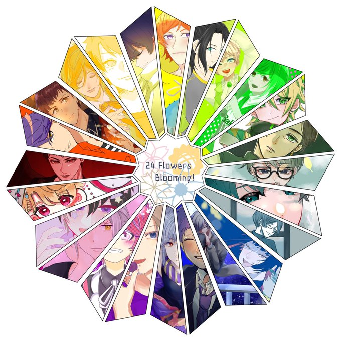 #24Flowers_Blooming 今回こちらの色相環企画絵にガイさん担当で参加させていただきました! 全員揃うと圧巻で、とてもかっこいい雰囲気になりました✨ こういう企画は初めてで緊張しましたが、参加できて良かったです😂 他の参加者の皆さんの素敵イラストはタグから見れますのでぜひ!