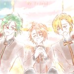 🍊「大和さん…その位置の✌️は古い」 👓「え⁉︎ウソでしょ。みんなやるでしょ⁉︎」 🍋「しません」 👓「ナギ、マジトーンで言うのやめて…」 #ピタゴラの日 #3月26日は西へ東へピタゴラスな日 #3月26日は西へ東へピタゴラスの日