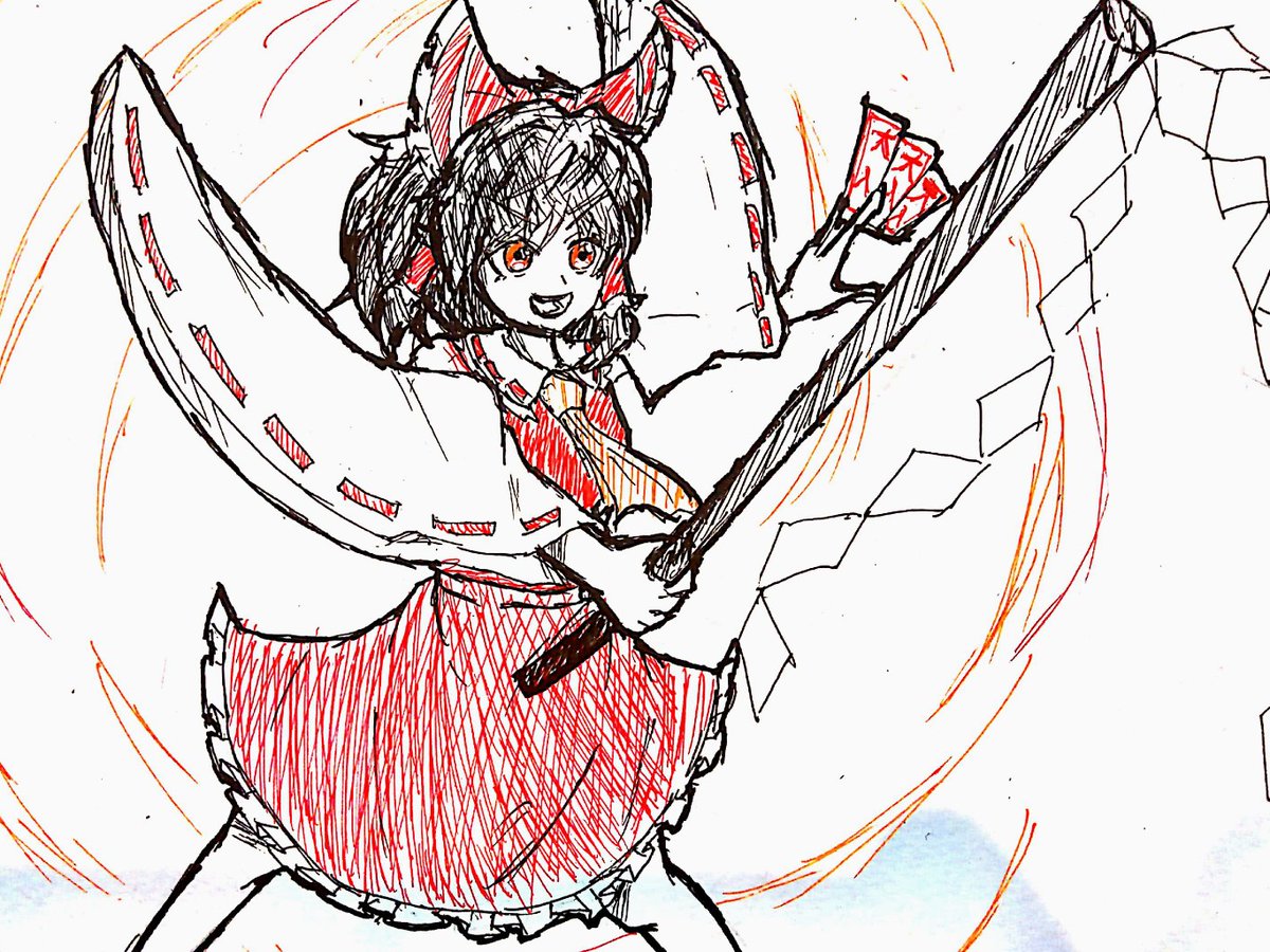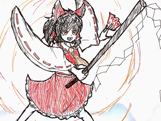 みこの信号機は全て赤信号(危険) 小傘「ひっ!⁉︎?」 #深夜の真剣お絵描き60分一本勝負 #博麗霊夢 #豊聡耳神子 #東風谷早苗 #3月5日は巫女の日 #3月5日は神子の日 #東方project #アナログ絵