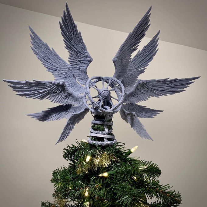 Test print for December- Margo, The Orphan of Set - also a tree topper! 🎄 #dnd #dnd5e #miniatures #dungeonsanddragons #dndart #dndminis #miniature #dndartist #3dprinting #3dprint #3dprinted #3dprints #biblicallyaccurateangels #celestial #angel #eldritch #horror #lovecraftian