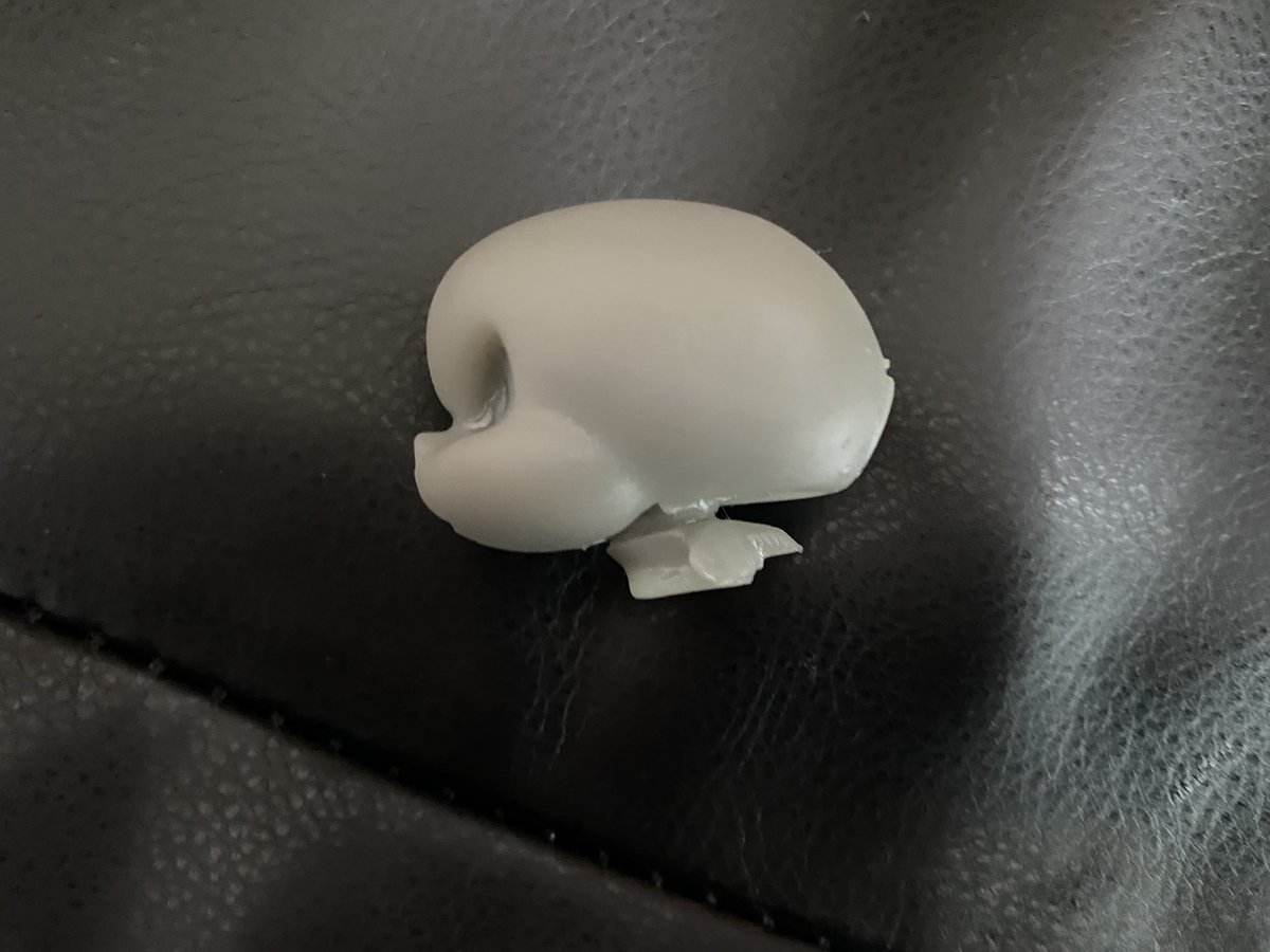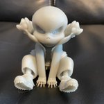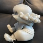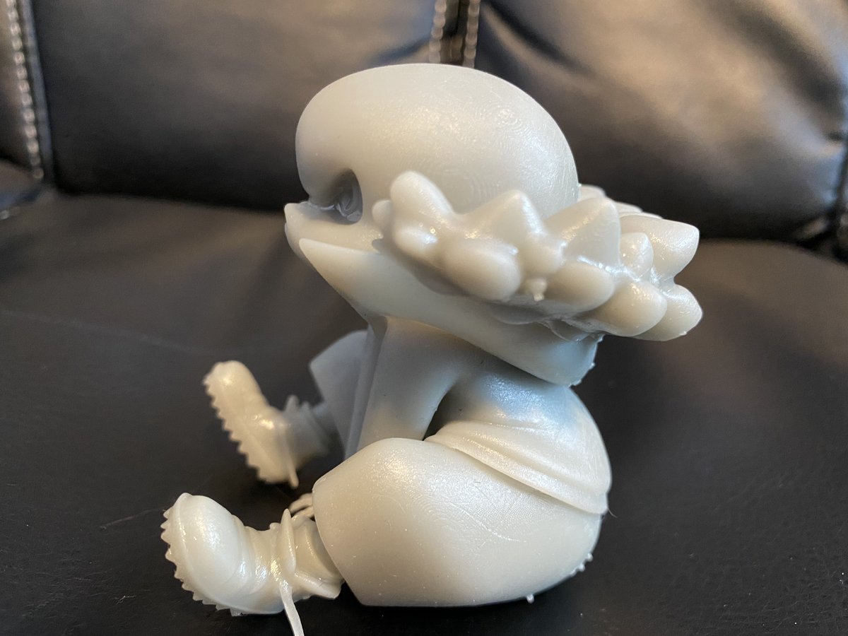 Print came out. He's tiny! I thought I scaled him bigger, but he's still small. I know I modeled his head egg shaped but it wasn't that oblong, so I'm wondering if the orientation of the print did something such that the curing resin took on that shape. Try again... #3Dprinted