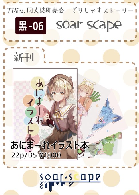 6月12日 #774incオンリー『でりしゃす♪♪♪ストーリー2』・サークル『Unlock』スペース【C-05】にて出展します! 新刊は『774inc.の青系のイメージカラーのメンバー』のイラスト本です。 A5全頁フルカラー・1冊500円で頒布します。