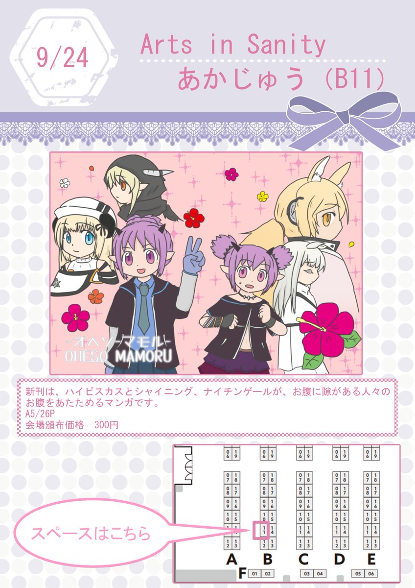 9/24のAiSのお品書きを用意しました! ハイビスカスとシャイナイがお腹に隙がある人々のお腹を温める漫画が新刊です。 #AIS_01 ◆新刊サンプルはこちら:pixiv.net/artworks/10120…