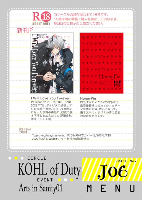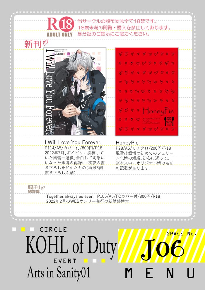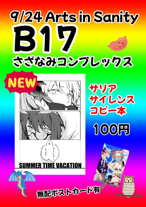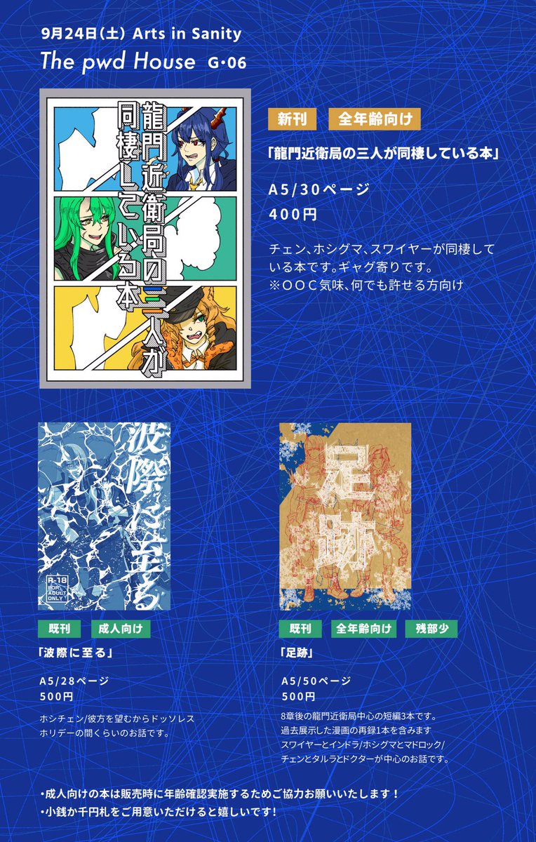 #AIS_01 9/24㈯「Arts in Sanity」H•04 トルネードバルサミコ酢 ※取り置きは相互フォロワーさんのみ受け付けです🙏🏻 triokini.com/circle/item/li… 新刊、既刊サンプルをツリーに繋げてあります! 〆ランサ本は年確にご協力ください 当日スペースにスチュワード君とメランサちゃんが居ます!!