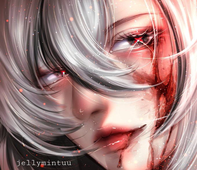 TW blood // #Lynette character story 5: "You have good ears. Learn to use them." "Father" kneaded Lynette's ears. That touch was not gentle. Indeed, they were as cold as the moon's light. And like that light, it illuminated a corner of the darkness. #Arlecchino