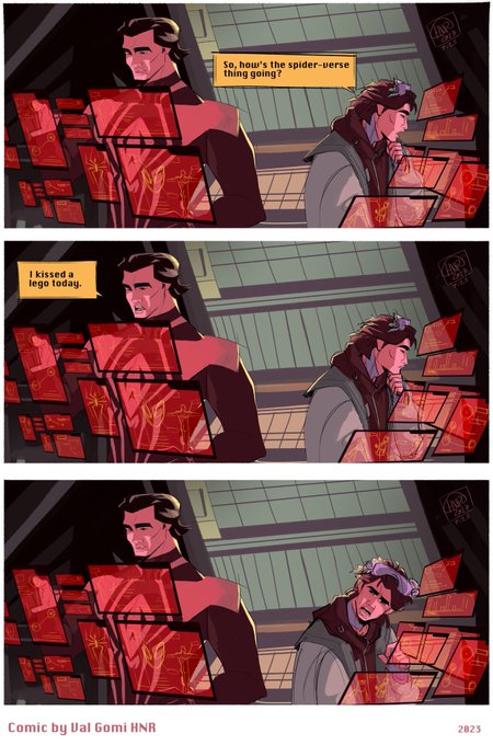 My deaf spider OC, Marisol, has a little crush and Hobie ... helps out 🤦♀️ #atsv twitter.com/i/web/status/1…