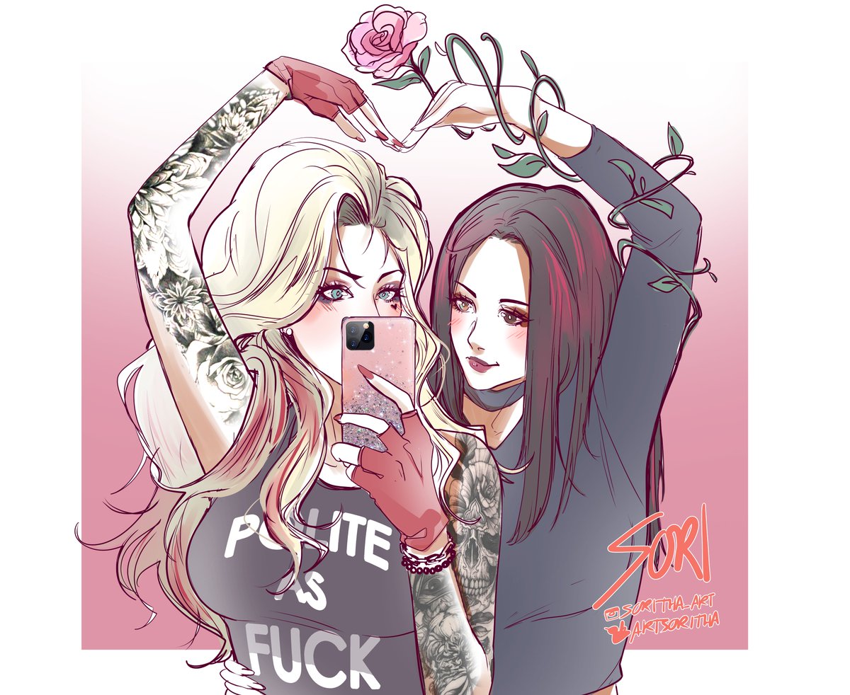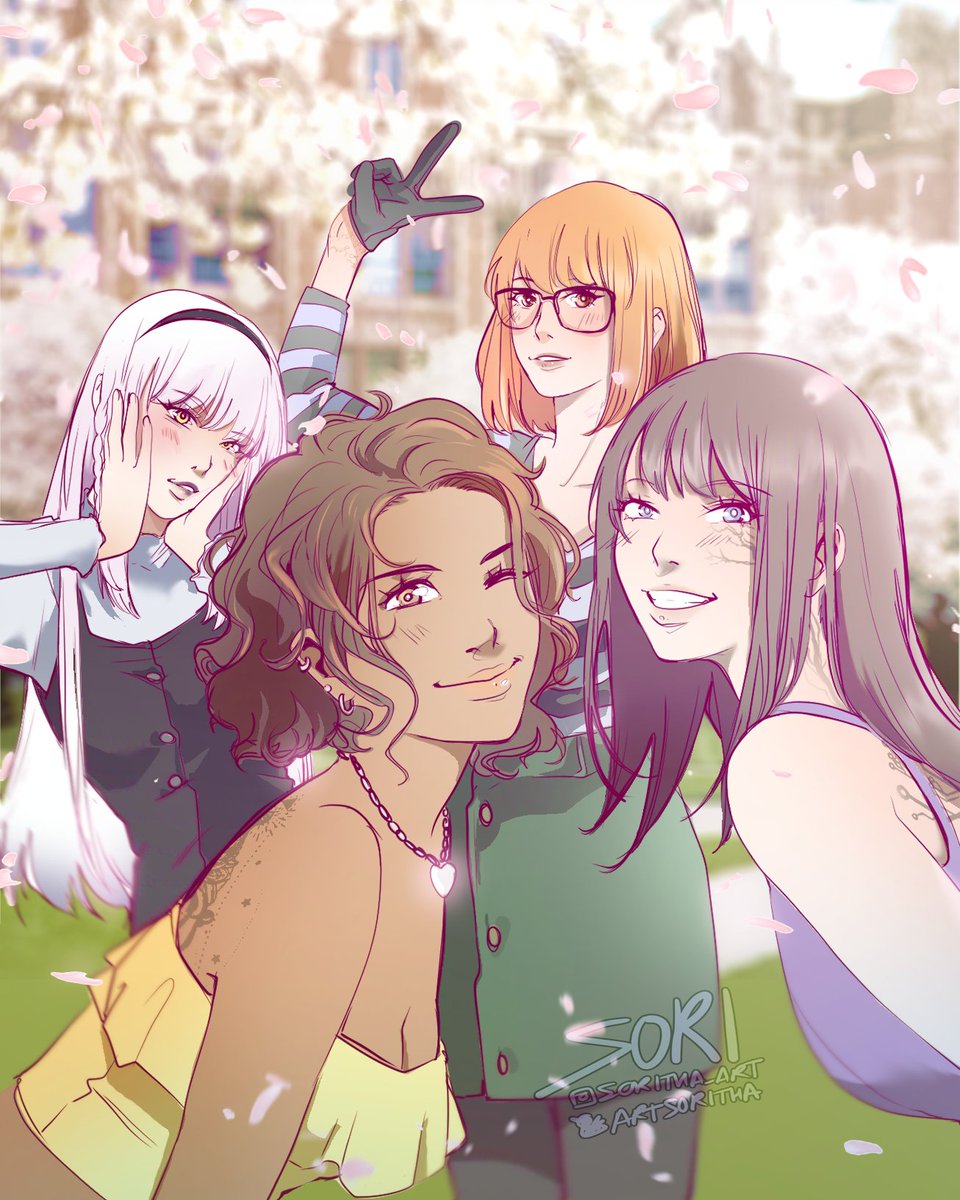 Un dibujo de las 4 juntas al fin, ya me puedo morir feliz (???) AAA ✨✨✨ Lo bonitas que han quedado todas 🥺💕💕🌸 Selfie en la uni 🌸🌸🌸 @LadyReahOfi @LiliCross_ @Dangelisa @Christerva @terduki #ADOM #AmorDeOtroMundo