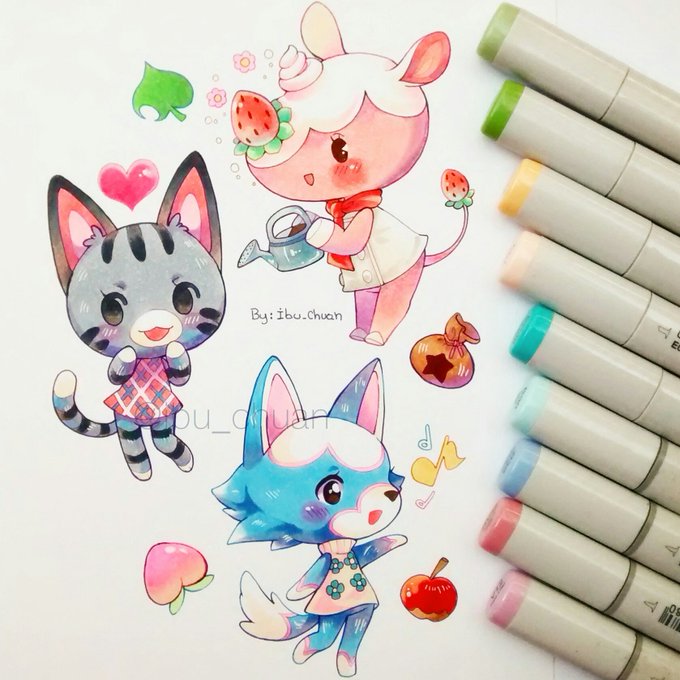 #animalcrossingnewleaf #ACNL Algunos fanart de las vecinas más lindas del pueblo (?) Espero les guste \;7;)/ 🍓🍓💓💓