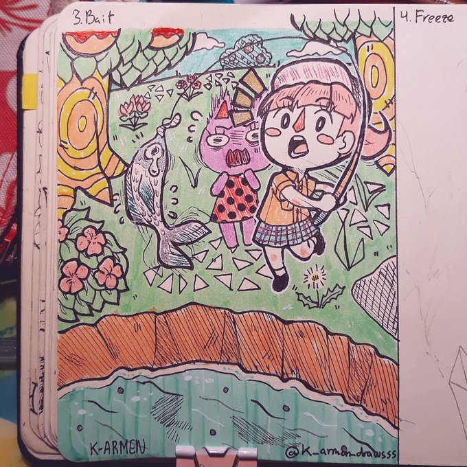 《inktober》Day 3: Bait • • • Better late than never! The photo is horrible but I tried my best :")) #inktober2019 #ink #inktober #markers #shiny #animalcrossing #animalcrossingnewleaf #animalcrossingpocketcamp #acpc #acnl #acnh #colorful #color #fishing #bait #apple