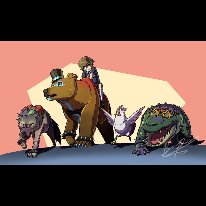 The security breach gang but...animals. I feel pretty happy with this (especillay with Monty) #fnaf #fnafsecuritybreach #glamrockfreddy #glamrockchica #montgomerygator #roxannewolf #gregoryfnaf #digitalart #animals