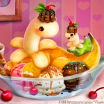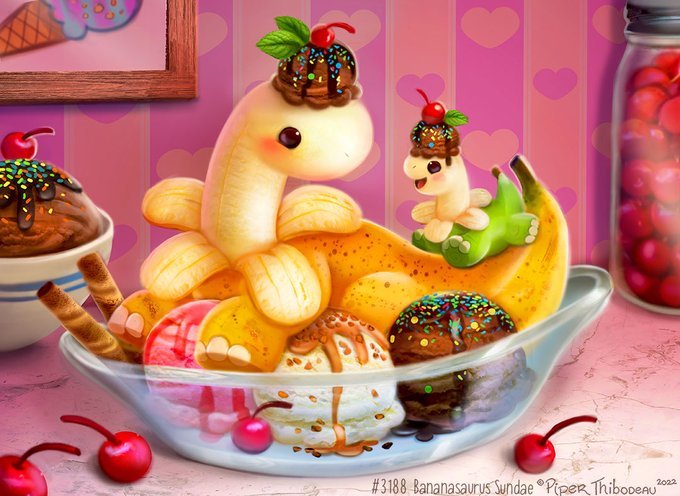 #3188. Bananasaurus Sundae The Bananasaurus we made in 2021 --but in Sundae form :) hehe. #art #artist #illustration #digitalart #animals #kawaii #fantasy #characterdesign