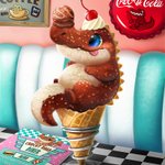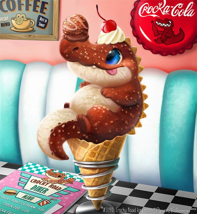 #3190. Crocky Road Ice Cream Another remake of an older piece. We wanted to feature Crocky-Road in a diner setting :) #art #artist #illustration #food #icecream #digitalart #animals #kawaii #fantasy #characterdesign
