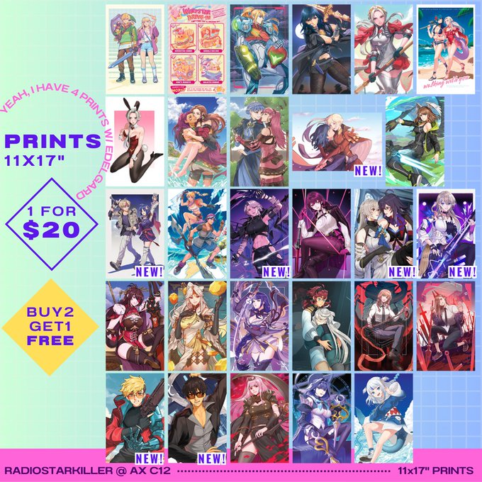 I will be at Table C41 (Clear for one!! ITS ME I'M THE ONE) this year at Anime Expo. Please come by and say hi :9 along w these goodies I will be offering limited in person sketch commissions each day as well #AX2023ArtistAlley #AnimeExpo2023 #AX2023