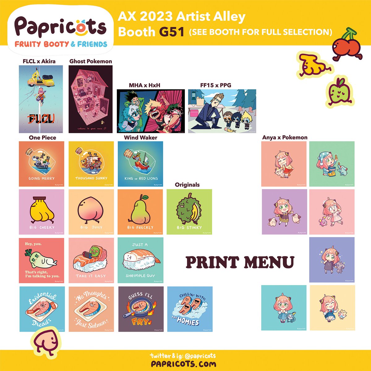 AX 2023 Catalogue - I'll be tabling with celie at [A20] and here's everything I'll have with me 🌱 my first year at AX!! Gonna frow up #AX2023ArtistAlley #AnimeExpo2023 #AX2023