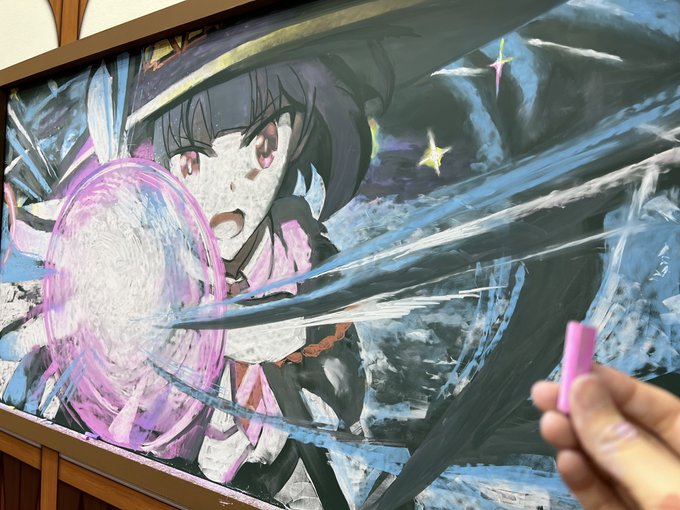 #AnimeJapan 『この素晴らしい世界に爆焔を!』黒板アート! 見つけてくださった方、だんだんできるようすを見守ってくださった方もありがとうございました🔥 「ゼロからロゴを…描いてる…???」 のご感想、かなり嬉しかったです。ロゴもフリーハンドで描きあげました… #このすば twitter.com/i/web/status/1…