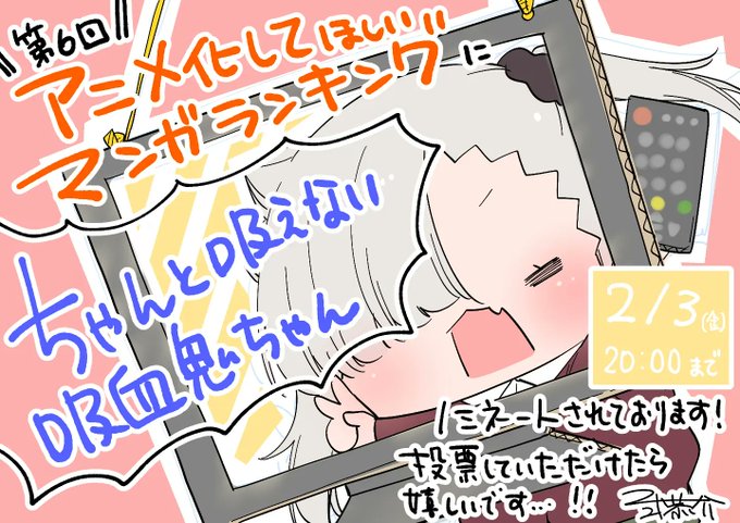 アニメ化してほしいマンガランキングに 『ちゃんと吸えない吸血鬼ちゃん』ノミネートされました…!! 五十音順で50番目です✨ よろしくお願いいたします🍼 #ちゃんと吸えない吸血鬼ちゃん #AnimeJapan #アニラン twitter.com/DandhunPuku24/…