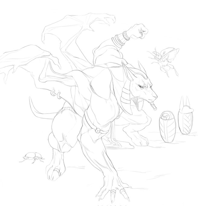 New oc in process... or is it just, Anubis? 🏺🪲 Thank @TFiddlerArt for being such a good reference 👀👉👈 #sketch #digitalart #Anubis #drawing #furry #furryartist