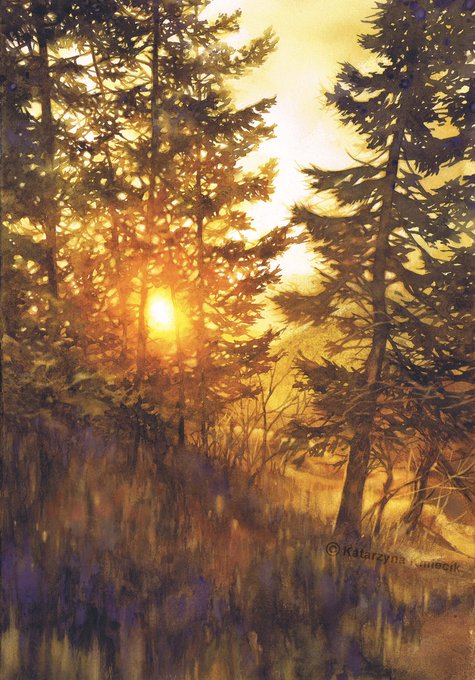 The award-winning #watercolor painting of mine - "Golden Sunset Trees" on half-imperial paper (38x56 cm), 2019. Don't forget to tell me what you think! Original painting and art prints on Etsy: bit.ly/sunset-trees-3… bit.ly/sunset-trees-3… #artontwitter