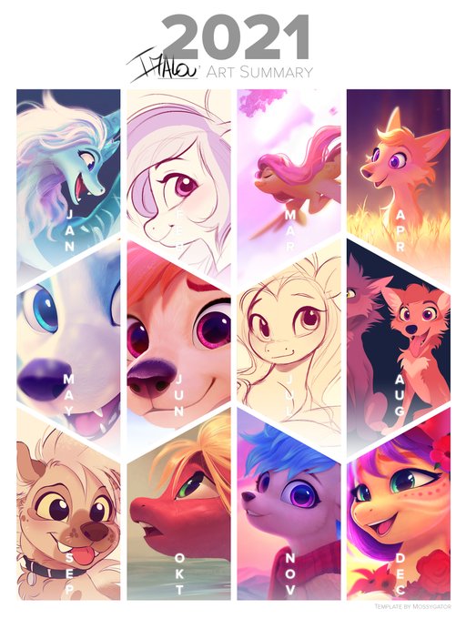 Happy New Year ! I was going to post this yesterday, but I guess starting off 2022 with a look at some of the stuff from 2021, using @mossygator_ 's template~ #Artsummary2021 #artsummary
