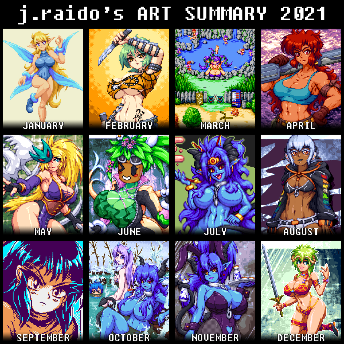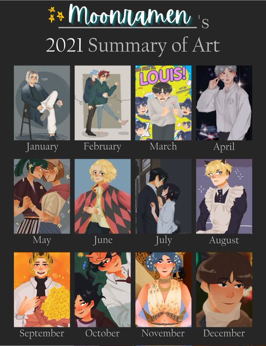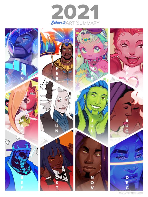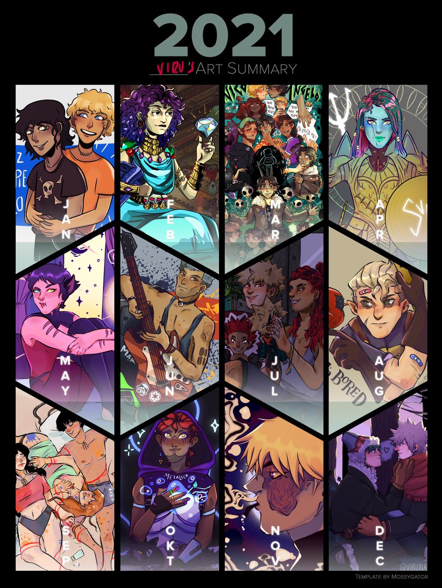 Happy New Year ! I was going to post this yesterday, but I guess starting off 2022 with a look at some of the stuff from 2021, using @mossygator_ 's template~ #Artsummary2021 #artsummary