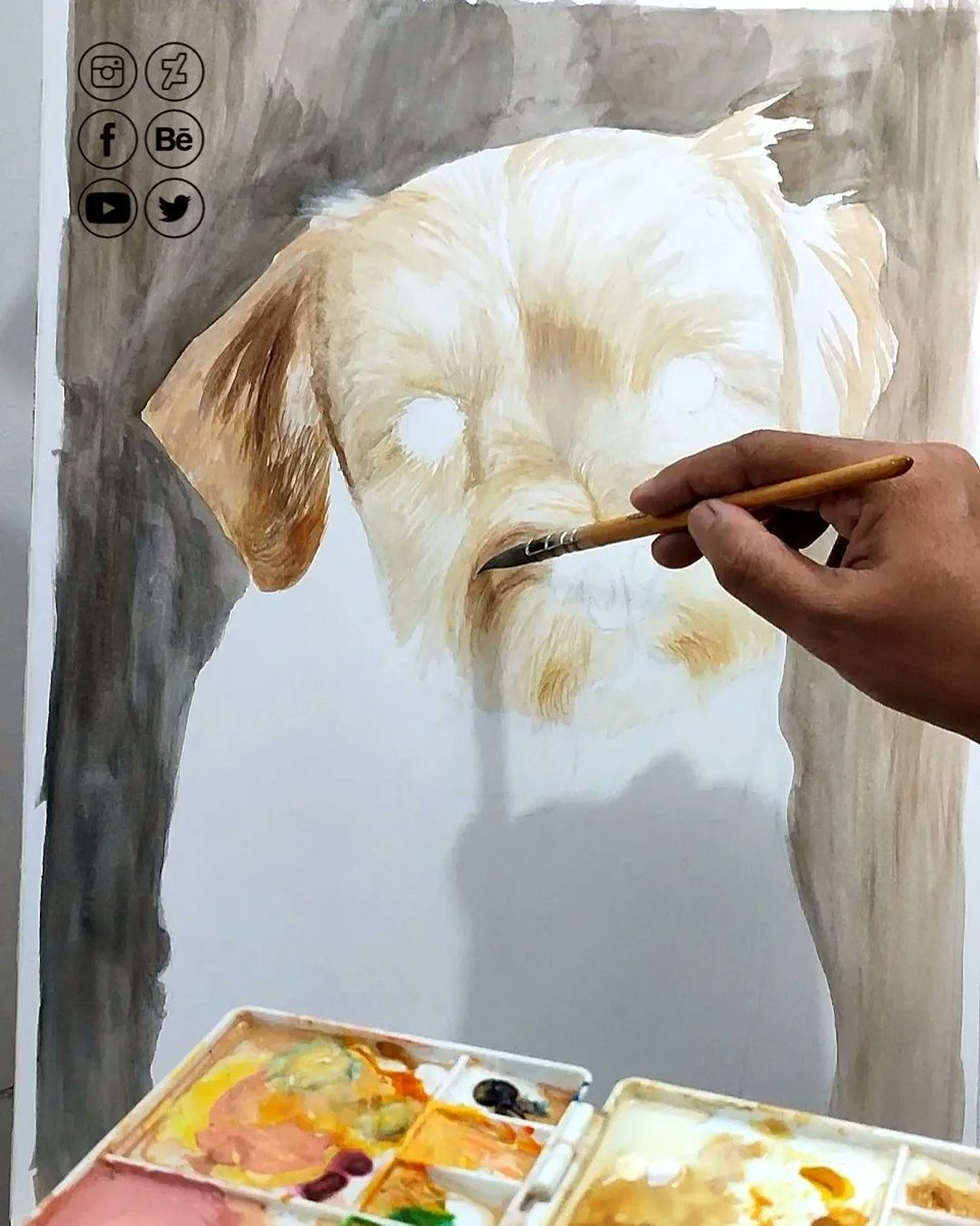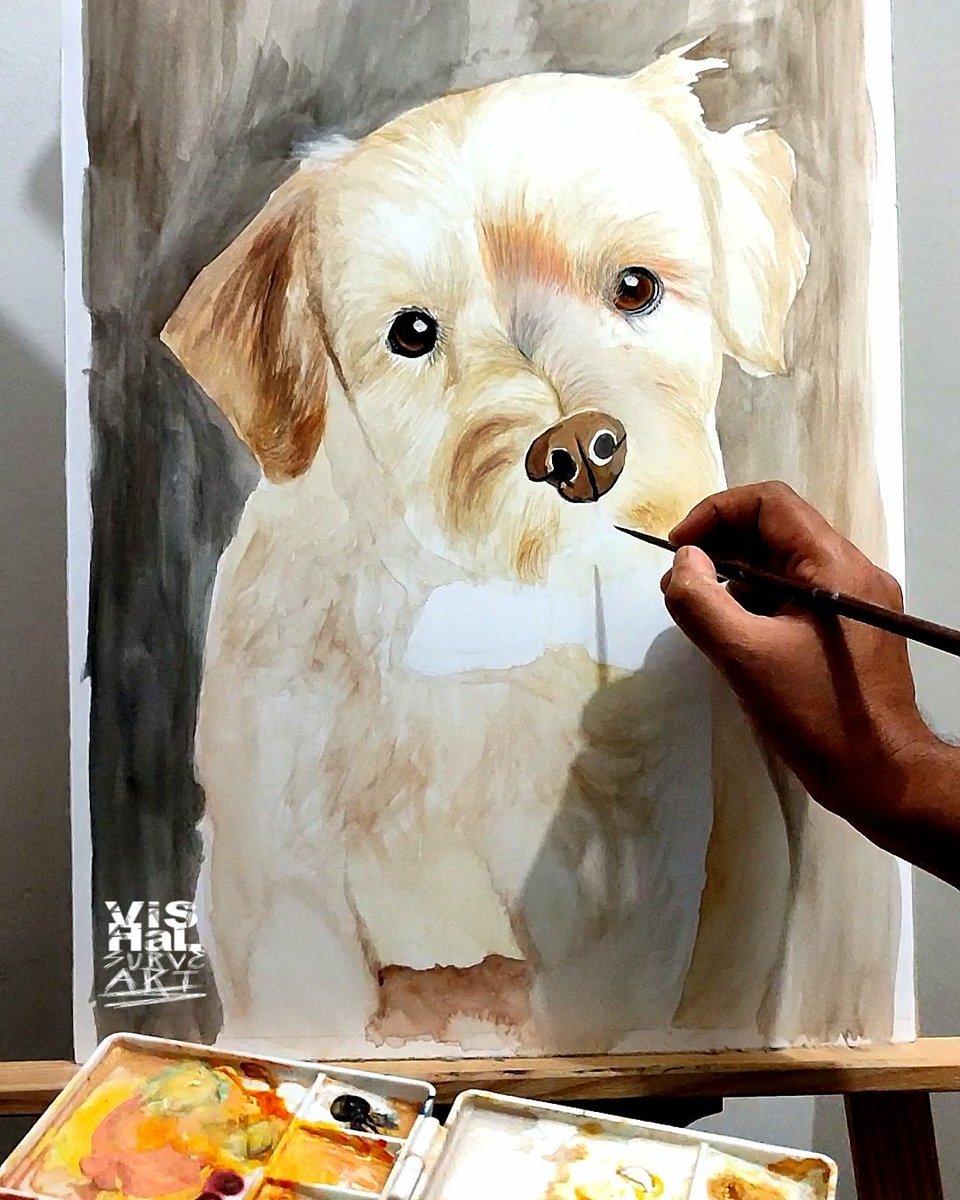 Working on this very cute Watercolor Portrait of a Yorkshire Terrier Puppy. #vishalsurveart #watercolorpainting #dogportrait #mansbestfriend #artistsontwitter #Artemis #Artchivist #painting #drawing #ArtistOnTwitter #dogsoftwitter #cutedogs #cuteness #furry #artworkเอนจีน