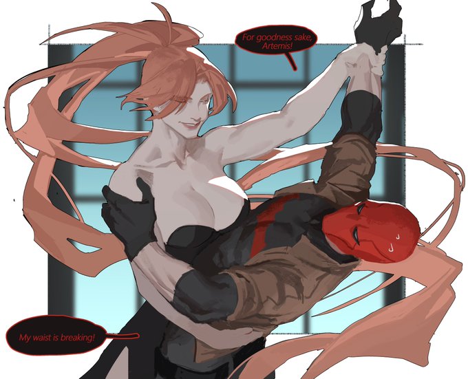 Jason is walking towards the couch just when Artemis standing up for water. (Then her head is stuck in the🍞 #Jasontodd #Artemis #redhoodoutlaws #RedHood
