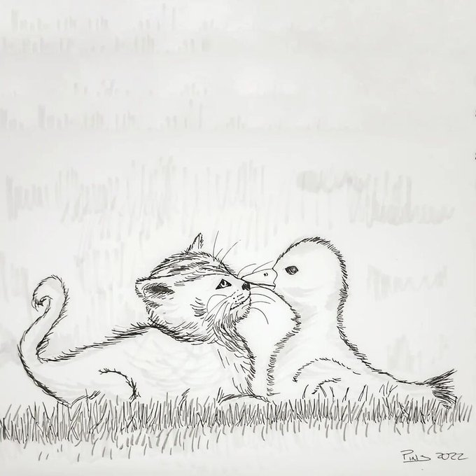 if two beings as contrasting as a #fowl and a cat can coexist, why humans can't? si dos seres tan contrastantes como un #ave y un gato pueden coexistir, ¿por qué los humanos no podrían? #inktoberday16 #inktober2022day16 #inktober2022 #inktober #inktob… instagr.am/p/Cjw2L6nOOUC/