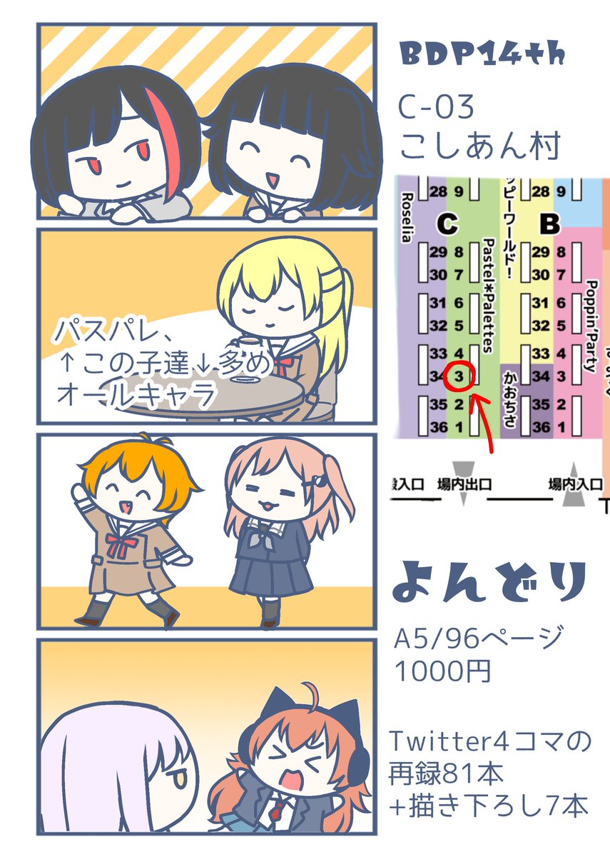 11/28 大田区産業プラザPio #BDP14th で頒布する新刊です 謎のポピパギャグです、沙綾が爆発したりりみが闇堕ちします(?) たくさんのサンプルはpixivにあります→ pixiv.net/artworks/94327… A5/24P/¥400