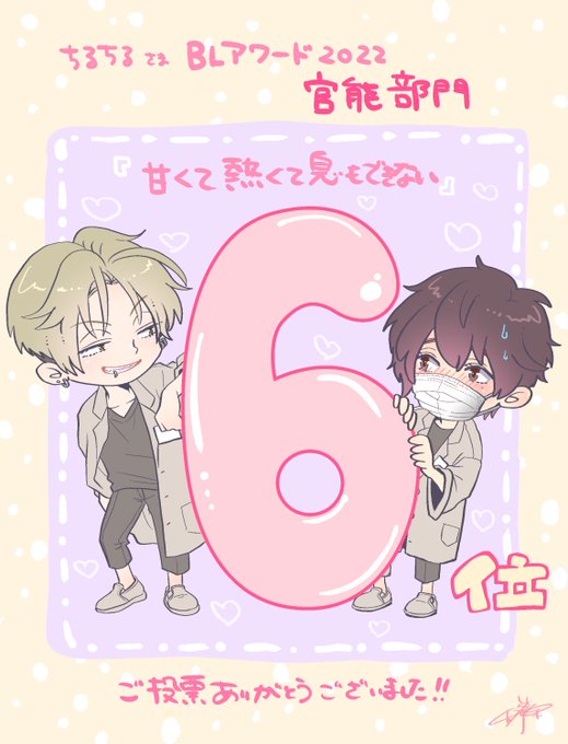 大変光栄なことに #BLアワード2022 にて「恋が満ちたら」がシリーズ部門14位、攻部門7位を頂きました🙌🧡 応援してくださった皆様、本当にありがとうございました!コメントもたくさん頂き感激です🥰 もうすぐお誕生日イベントやドラマCDもありますので今後ともふたりの事をよろしくお願いします🌸
