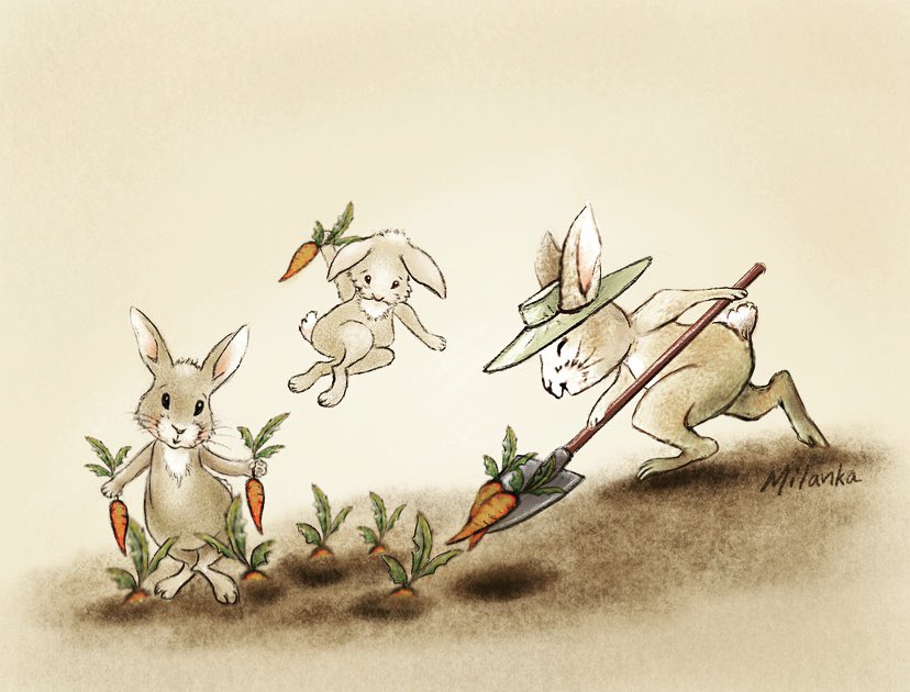 Day 24 - The bunnies are digging in the garden! #dig #inktober #inktober2020 #inktoberdig #colour_collective #blackiris #drawtober #drawtober2020 #cute #little #bunnies #digging #garden #carrots #illustration #sketching #drawing #painting #bunnylove #kidlitart #bunny #art #love
