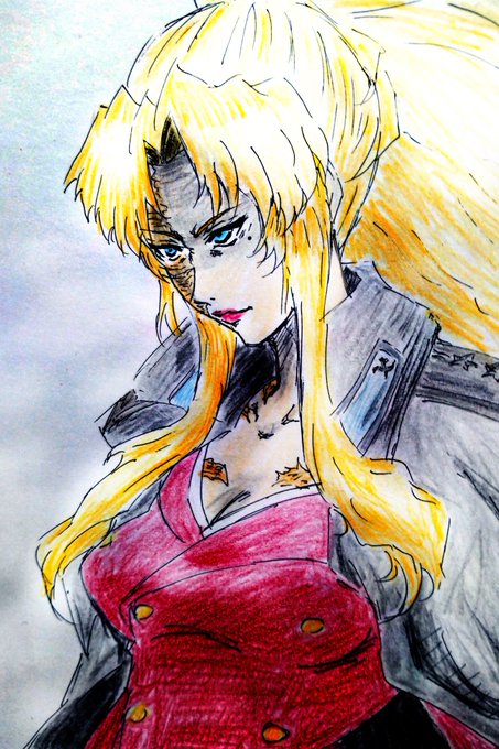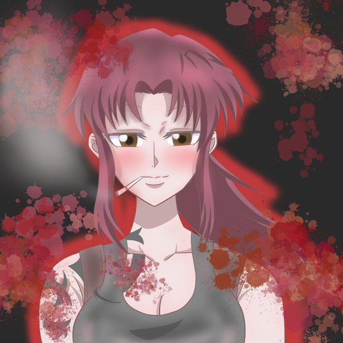 ヴァンパイア娘ちゃんと同じく~(=゚ω゚)ノウニャンコ♪ 以前に赤と青をテーマとした絵を描いていたよなぁ と探していたら… あった~レヴィだったニョロね~ヾ(´▽`*)ゝドスコイ♪ #ブラックラグーン #レヴィ #BLACKLAGOON