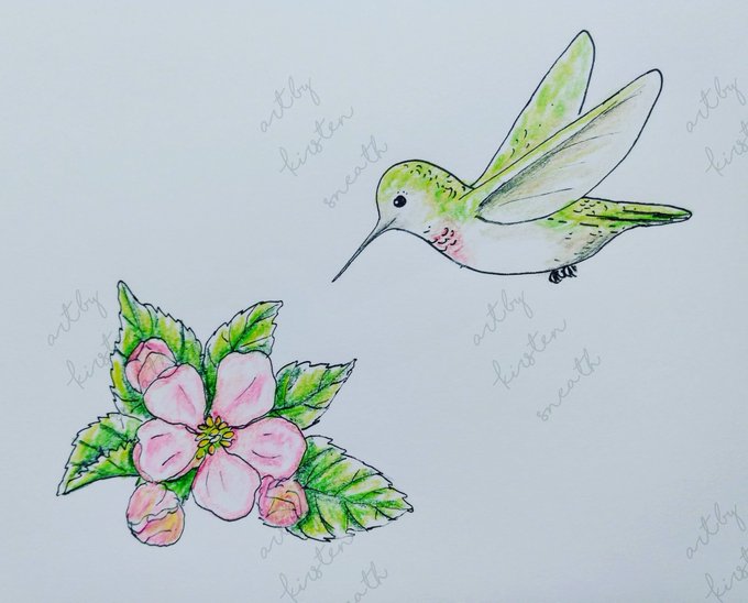 Day 12 of #drawtober prompt provided by Little Island Crafts ~ Apple ~ #apple #appleblossom #blossom #spring #hummingbird #littleislandcrafts #hummingbirddrawing #inkandcolourpencil #Bainbridgeisland