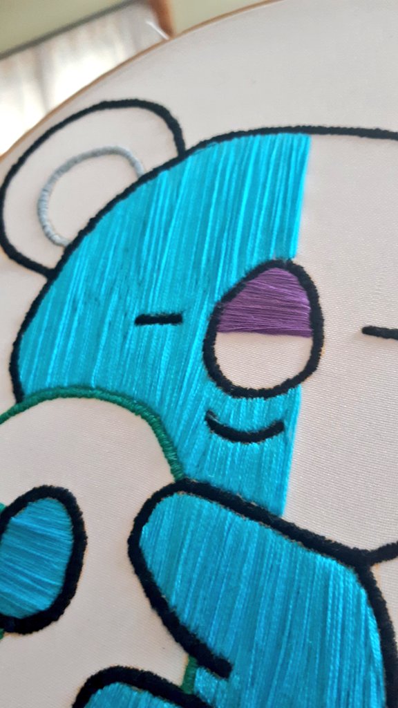 #Koya, la cara y orejas en pausa hasta comprar más hilo 😖 Ahora sigo con la nariz y el cojin 😍 @BTS_twt @BT21_ #bt21Koya #btsfanart