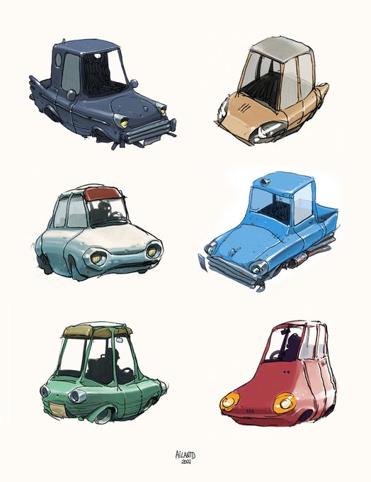 Definitive collection of these #ballpoint #doodles with digital color overlay silly cartoon #vehicles What's your favourite?
