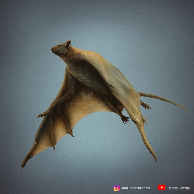 ONYCHONYCTERIS is a primitive bat (the oldest known so far) of the Paleogene. one of the many animals featured in my latest video youtu.be/IrrYInKV1i0 consisting on a Natural History Timeline . notice the longer tail and caws on each finger #onychonycteris #paleoart #bat
