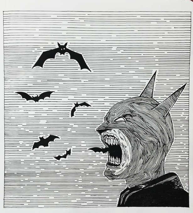 Day 3 - Fear Bat In the memory of a hero, my friend. We never forget you. #bat #inktober #revotober #2022Oct3Coup #whatishappeninginmyamar
